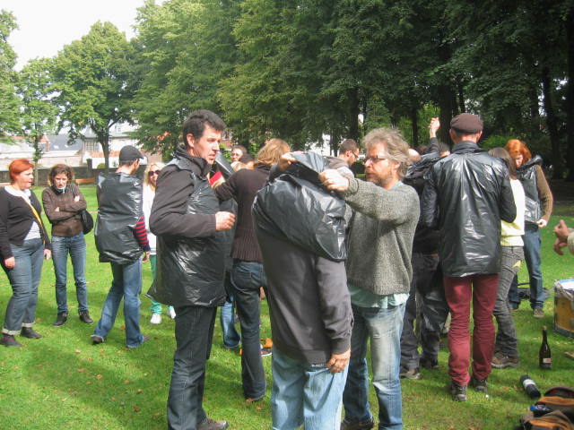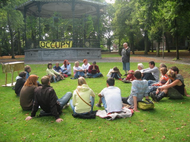 Pour rappeler qu’il y a 5 ans, avec la faillite de la banque Lehmans brother, commençait la crise financière et pour beaucoup de personnes, le plongeon dans la précarité et la pauvreté. L’Huile sur le Feu à proposé, dans le cadre du rassemblement d’Occupy Tournai, la création d’une image autour du Veau d’Or.
